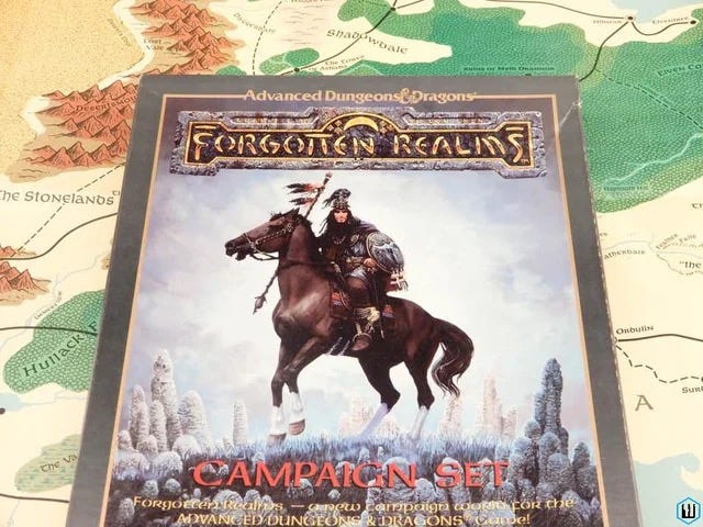 Forgotten realms makes me think grey, gold and green, and not just because of the logo - my first play of the first Baldur’s Gate was lots of stone and forest, green cloaks and so on, for the classic fantasy realm feeling: